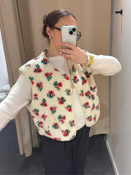 Veste ROSALIE écrue fleurs rouges