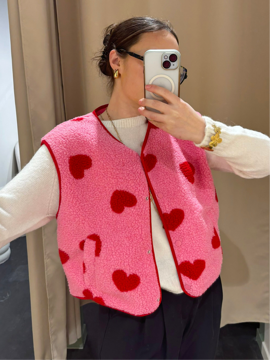 Veste ROSALIE rose motifs cœurs