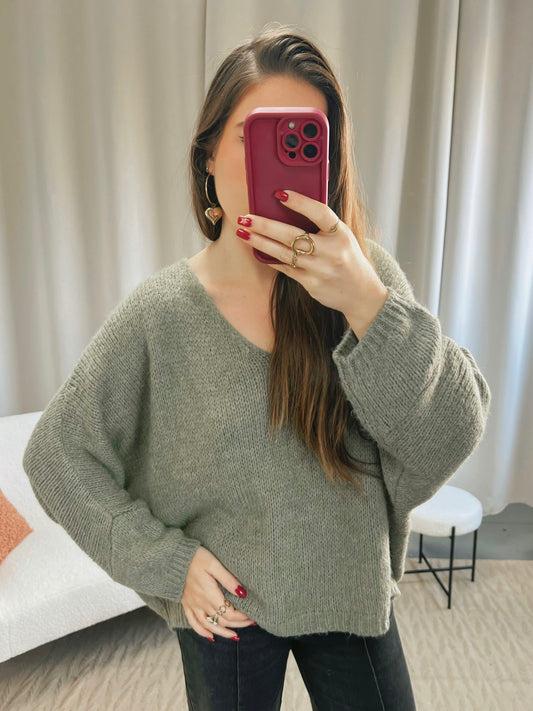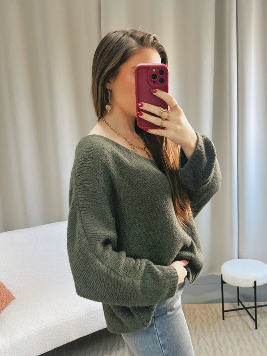 ÉpuiséPull KIRBY kaki foncé