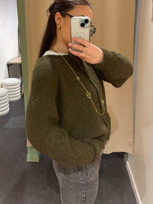ÉpuiséCardigan COZY kaki foncé