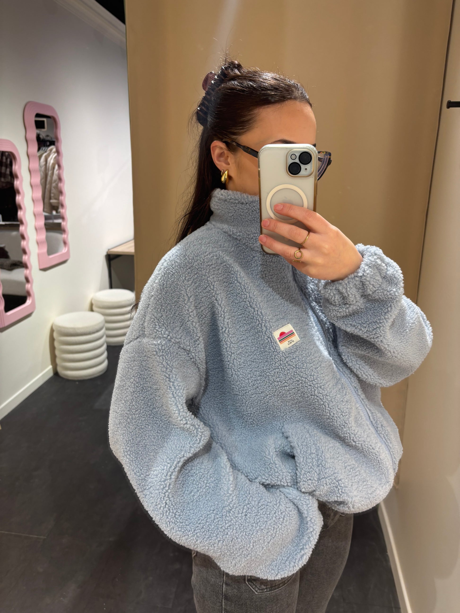 Astuce style : porte la légèrement zippée sur une chemise ou un top près du corps, avec un jean ou un pantalon tailleur pour casser le côté sporty et créer un look casual chic.