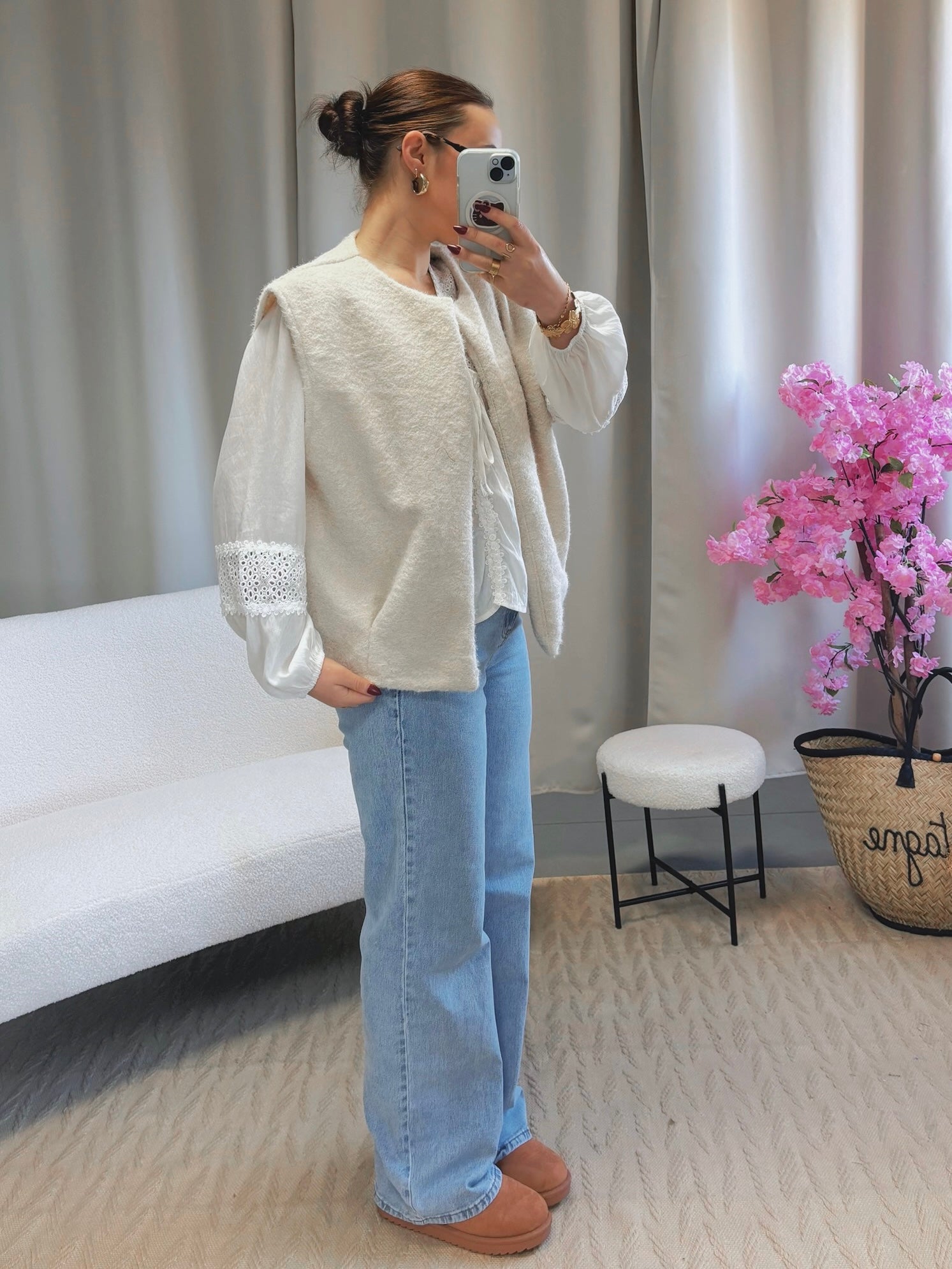 Astuce style : porte la avec une chemise et un jean taille haute pour un look cosy chic, puis ajoute un petit foulard pour une touche tendance sans voler la vedette à la veste.